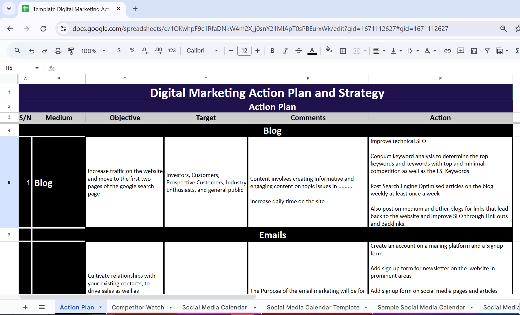 Digital Marketing Action Plan and Strategy